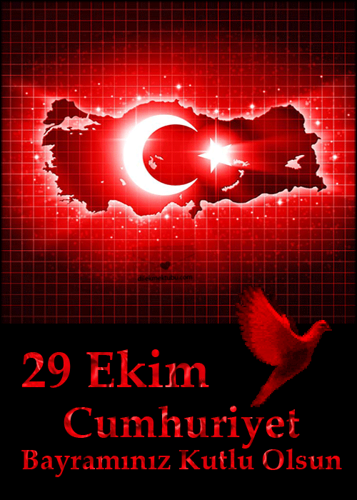 Bayram Mesajları 29 Ekim, Bayram Kartları, Bayram Mesajları, Cumhuriyet Bayramı, Hareketli Resimler, Milli Bayramlar Dilek Mektubu 28 Ekim 2017 0 Yorumlar 29 Ekim Cumhuriyet Bayramı Ne mutlu ki, Türküm ben Kırmızının bana verdiği aşkla Vatan yücedir, Şehitler yücedir, Türk kanı yücedir, Cumhuriyet Yücedir. Ne Mutlu Türküm Diyene! 29 Ekim Cumhuriyet Bayramınız Kutlu Olsun