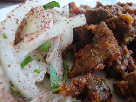 Ciğerleri ve hazırladığınız piyazı servis tabağına alın ve