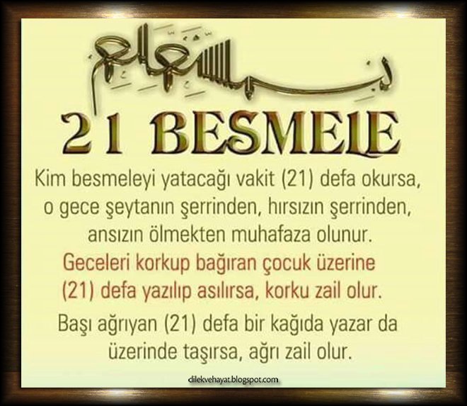 Dini Mesajlar Dini Resimler, Dualar ve Ayetler Dilek Mektubu 31 Ocak 2017 0 Yorumlar 21 Besmele 21 BESMELE ALLAH KABUL ETSİN