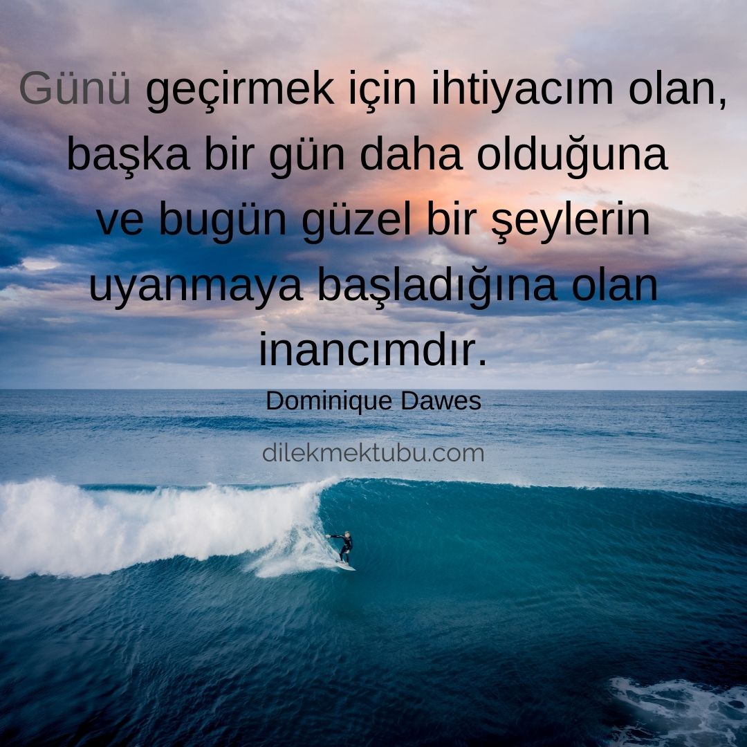 Günü geçirmek için ihtiyacım olan, başka bir gün daha olduğuna ve bugün güzel bir şeylerin uyanmaya başladığına olan inancımdır.