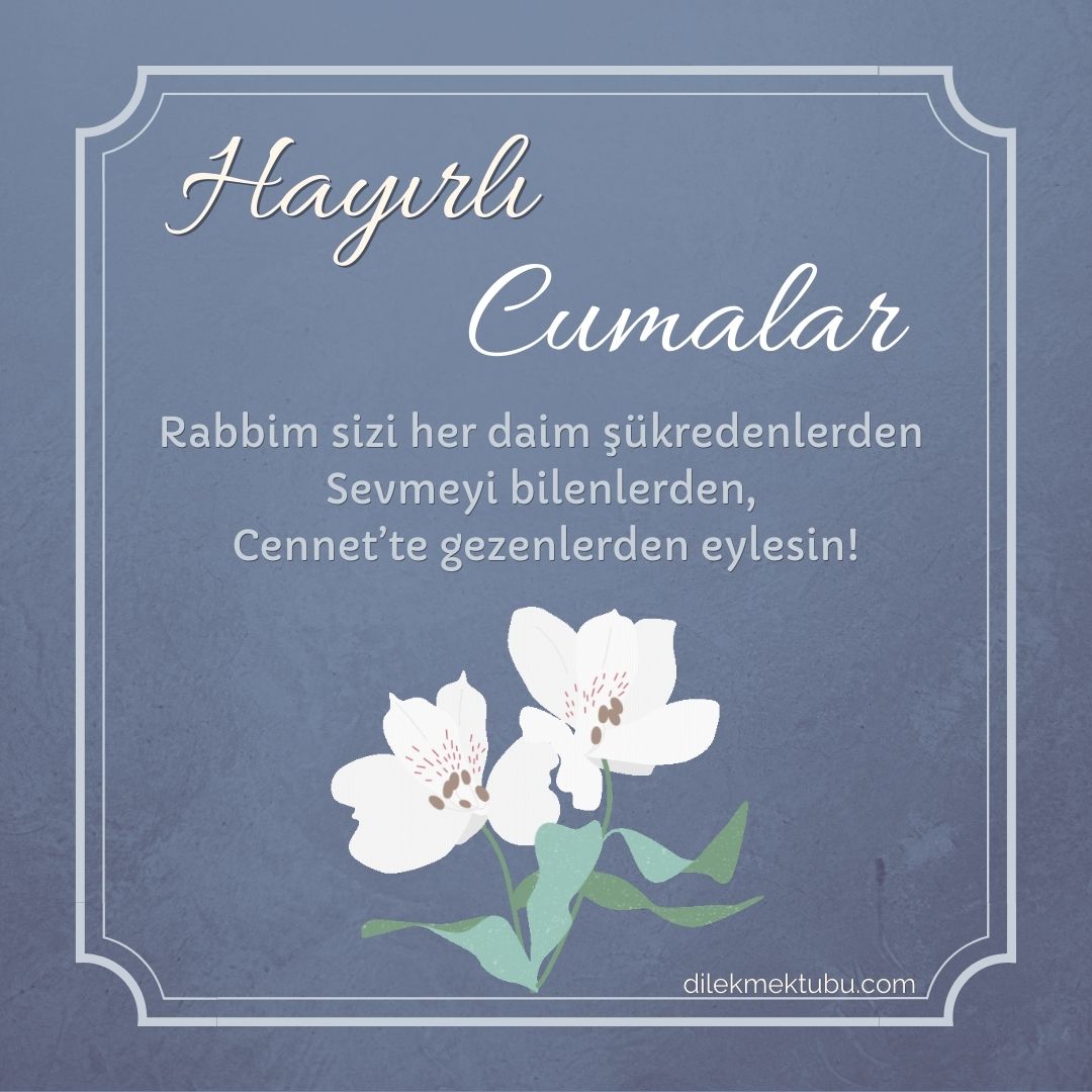 Rabbim seni her daim şükredenlerden, sevmeyi bilenlerden, Cennette gezenlerden eylesin! Cuman Mübarek Olsun