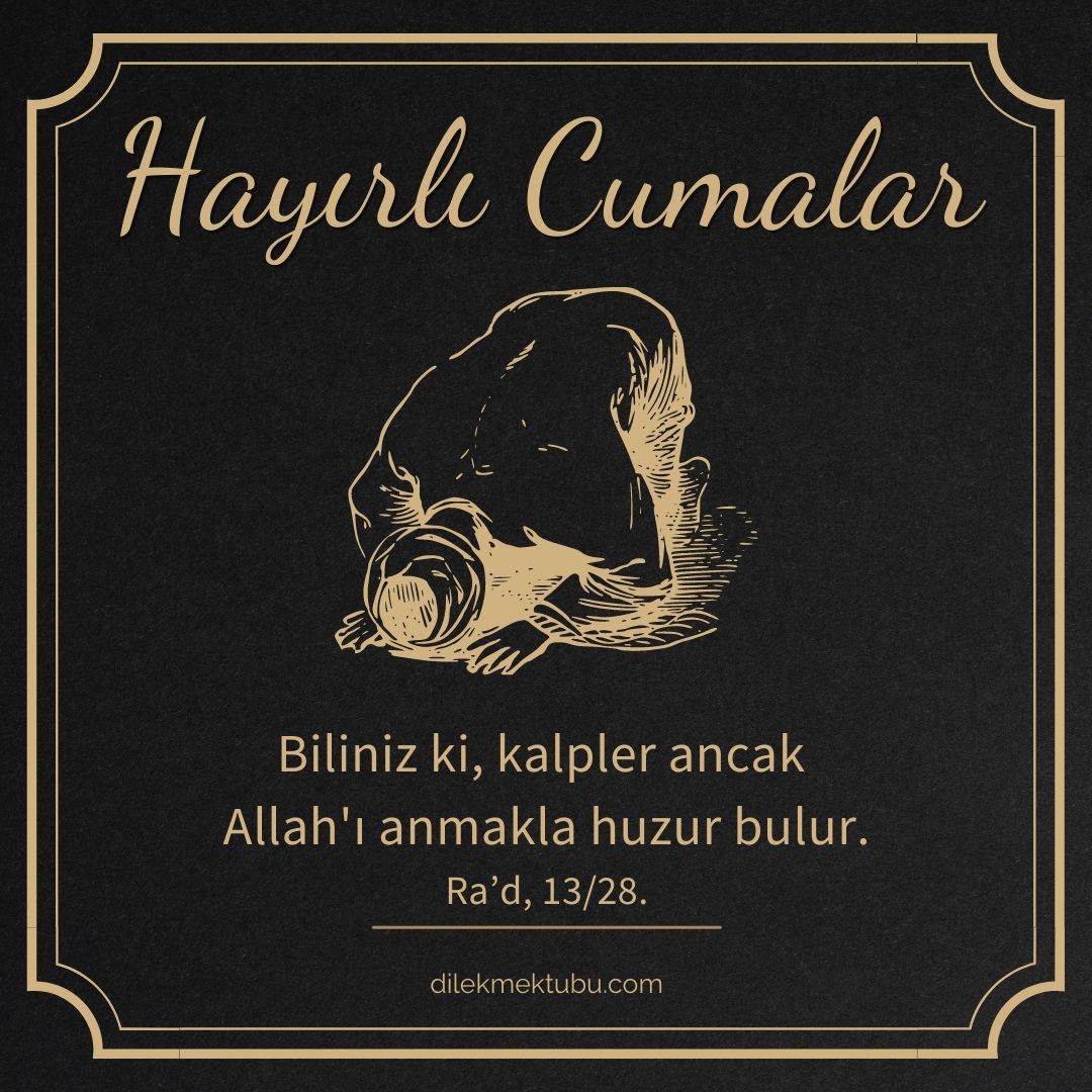 Biliniz ki, kalpler ancak Allah’ı anmakla huzur bulur. Ra’d,13/28. Hayırlı Cumalar.