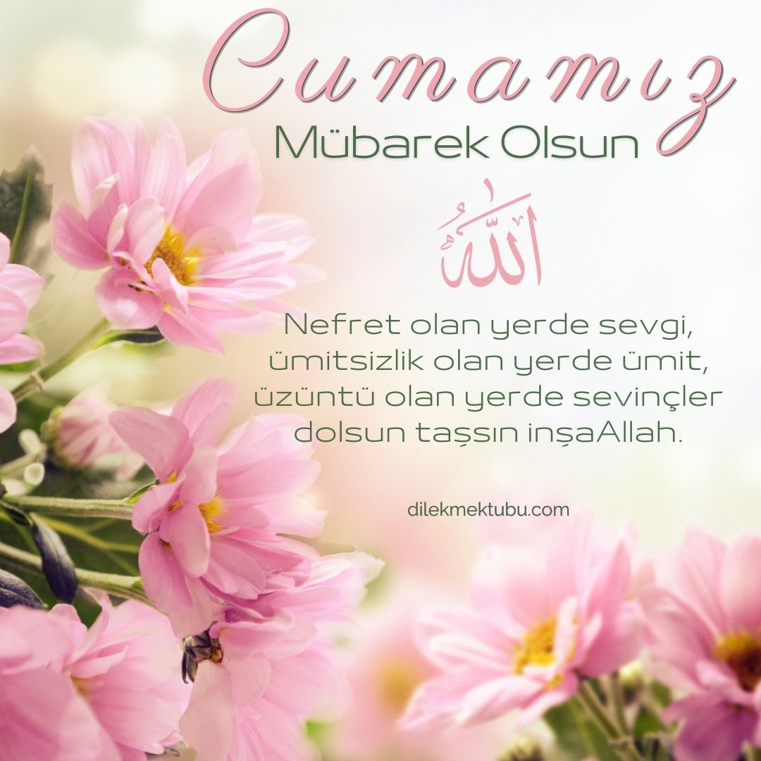 Nefret olan yere sevgi, ümitsizlik olan yere ümit, üzüntü olan yere sevinçler dolsun taşsın inşallah. Hayırlı Nurlu Cumalar.
