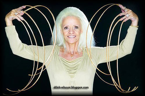 91,5 cm uzunluğundaki tırnaklarıyla Guinness Rekorlar kitabına girdi.