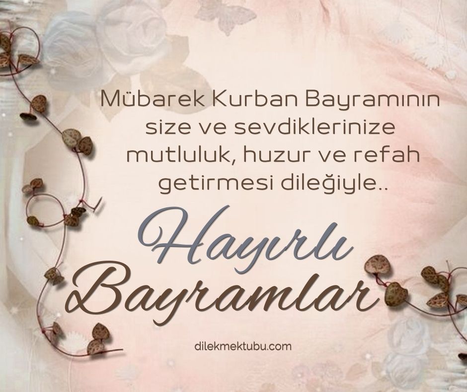 Sevenleri, eşi, dostu, küskünleri bir araya getiren Kurban Bayramı geldi. Sevdiklerinize yollayacağınız Bayram mesajları, resimli Kurban bayramı mesajları ve kısa bayram sözlerini sizler için bir araya getirdik. Bu bayramda siz de resimli mesajlarla sevdiklerinizi mutlu edebilir onların hayır dualarında yerinizi alabilirsiniz.