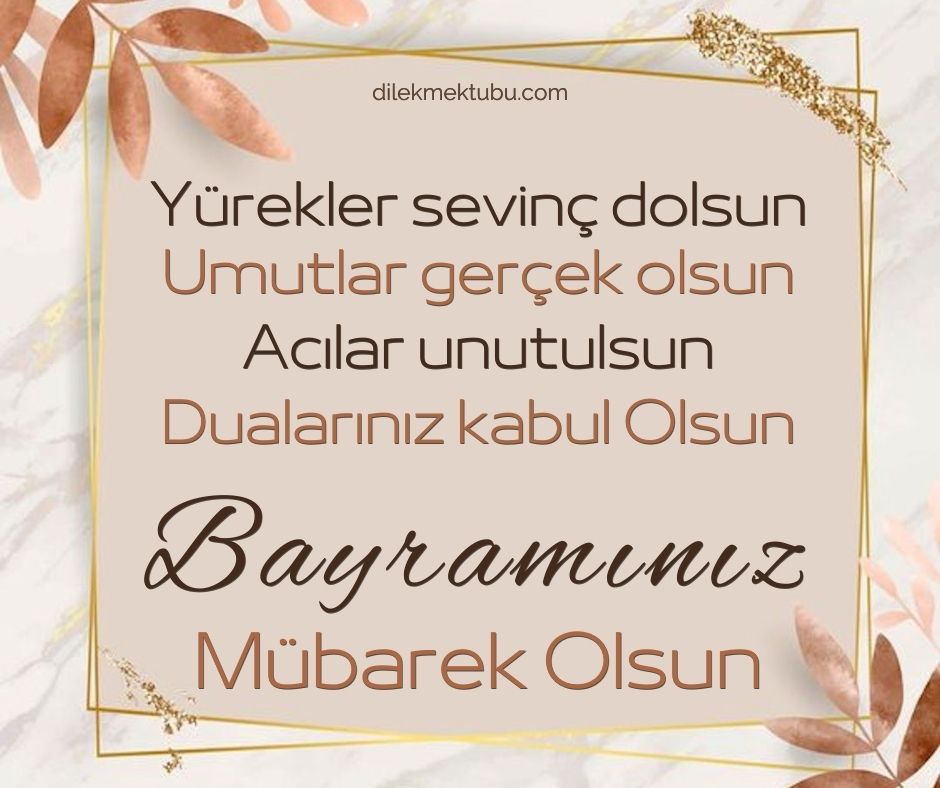 Yürekler sevinç dolsun. Umutlar gerçek olsun. Acılar unutulsun. Dualarınız kabul olsun. Bayramınız Mübarek Olsun.