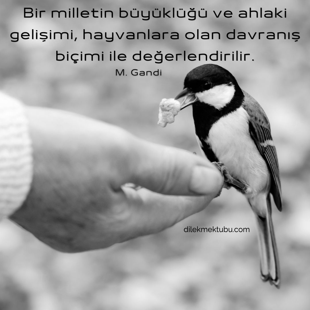Bir milletin büyüklüğü ve ahlaki gelişimi, hayvanlara olan davranış biçimi ile değerlendirilir.
