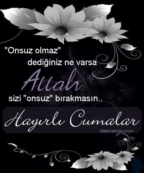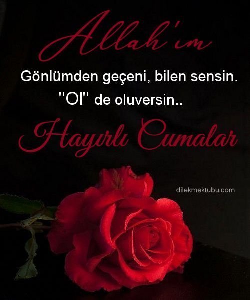 Bu mübarek Cuma hürmetine, bizi sevdiğin kullar arasına kat. Bizi çok sabreden, çok şükreden kullardan eyle. Seni çok analım; ömrümüz sevdiğin, razı olacağın amellerle geçsin. Sıhhat ve Afiyette daim eyle. Sevdiklerimiz bize bağışla. Şüphesiz senin her şeye gücün yeter. Amin Hayırlı Cumalar.