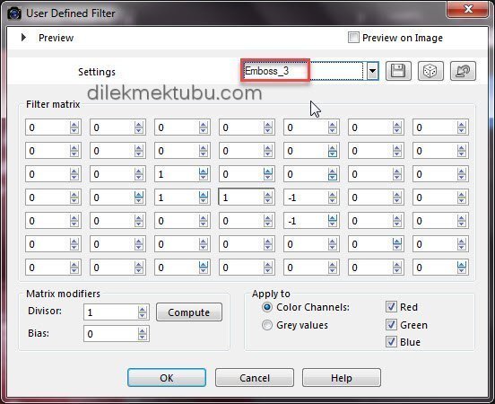 Effects – User Defined Filter – Emboss 3