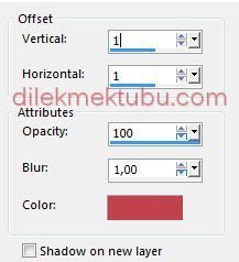 Effects – 3D Effects – Drop Shadow : 1 1 100 1 – foreground color : #c2424e