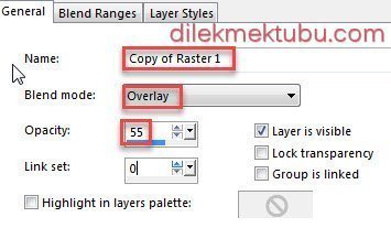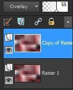 Layers – Properties – Blend Mode : Overlay and Opacity : 55
