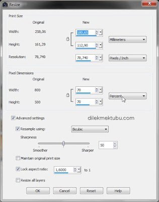Image – Resize : 70 Percent / Same settings