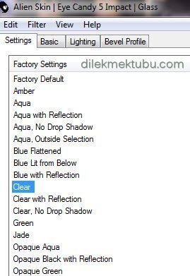 Effects – Plugins – Alien Skin Eye Candy 5:Impact / Glass : Clear