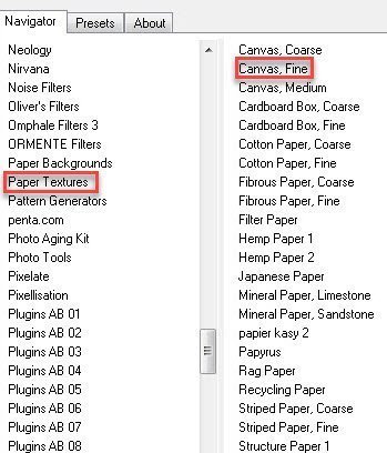 Filters Unlimited 2.0 – Paper Textures – Canvas, Fine