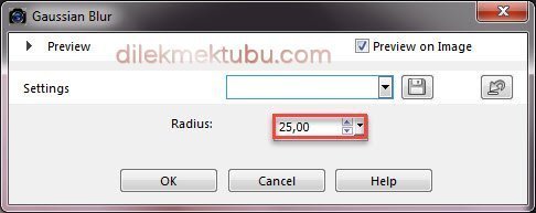Adjust Blur – Gaussian Blur – Radius : 25 ( Same Settings )