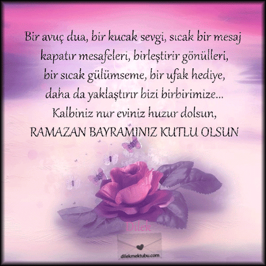 Bayram Mesajları Bayram Kartları, Bayram Mesajları, Dini Bayramlar, Hareketli Resimler Dilek Mektubu 24 Haziran 2017 0 Yorumlar Bayram Mesajı Bayramlar berekettir, umuttur, özlemdir. Yarınlar niyettir ve duaların kabul olsun, sevdiklerin hep seninle olsun. Ramazan Bayramınız Mübarek olsun.