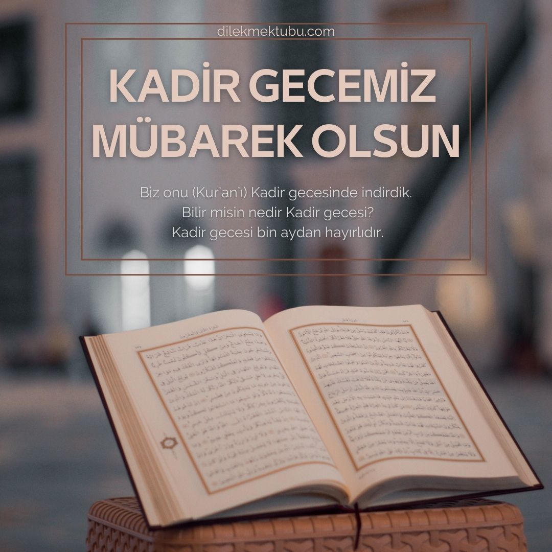 “Doğrusu biz Kuran’ı Kadir gecesinde indirmişizdir. Kadir gecesinin ne olduğunu sen bilir misin? Kadir gecesi bin aydan hayırlıdır. Melekler ve Cebrail o gecede Rablerinin izniyle her türlü iş için inerler. O gece, tan yerinin ağarmasına kadar bir esenliktir. ” (Kadir süresi, 97/ 1-5)