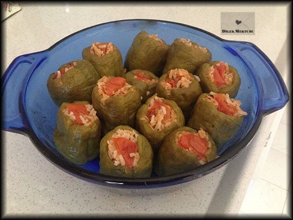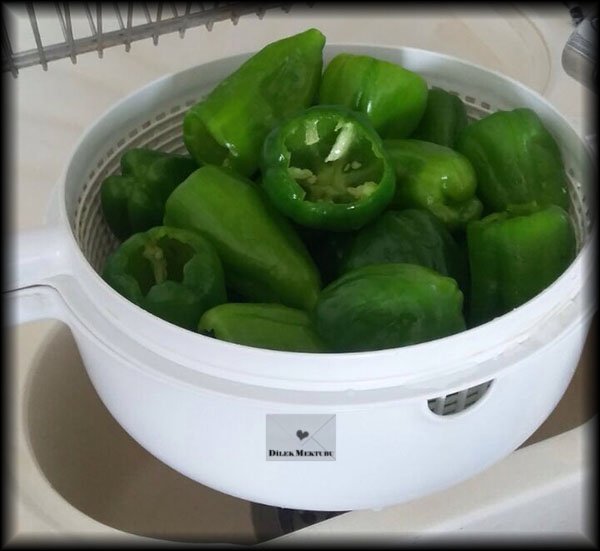 Dolmalık biberleri yıkayıp kapaklarını çıkartın.