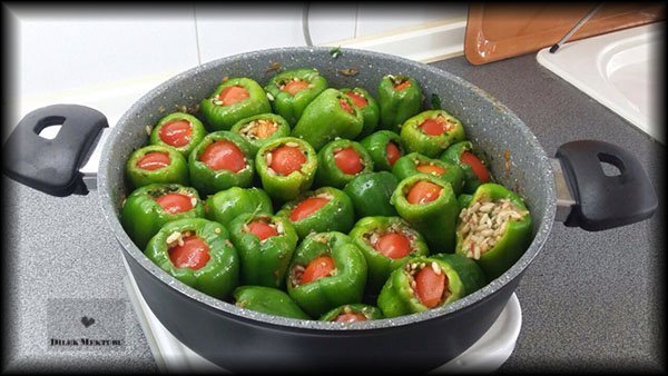 Biberlerin içini tatlı kaşığı yardımıyla çok sıkıştırmadan doldurun.